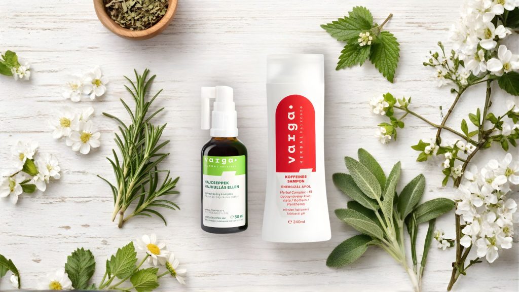 A gyógynövényes hajcseppek és a koffeines sampon együttes használata összehangolt rutint biztosít a hajhullás időszakában.
